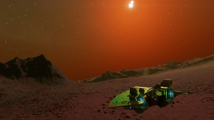 Now sitting in a sweeping valley with high crimson peaks sitting on the horizon, the twin stars above flooding the flat lowland with rusty light, the atmosphere was thick. Even with the stars overhead it gave the appearance of what would be perceived as dusk on most planets. I deployed the SRV and rattled off towards the mountains.