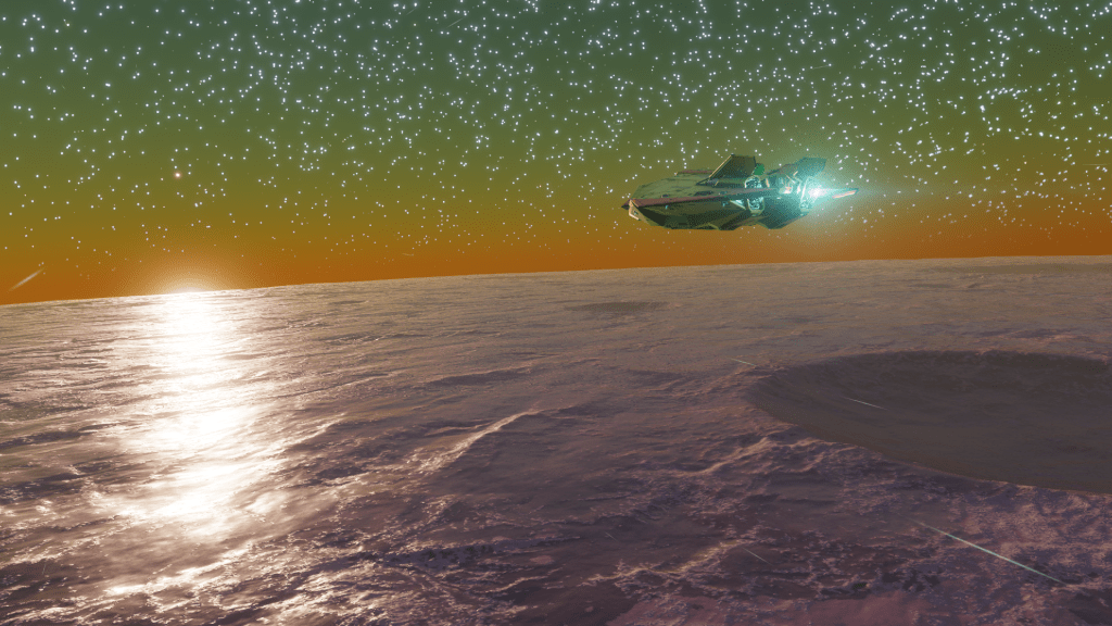 As I boarded The Hiraeth I could make out the sound of the DBS touching down, my hope was they had not seen me and the Hiraeth was just out of sight. Enough that it would give me time to plot a course and jump the heck out of here before I ended up stranded in my escape pod or worse.